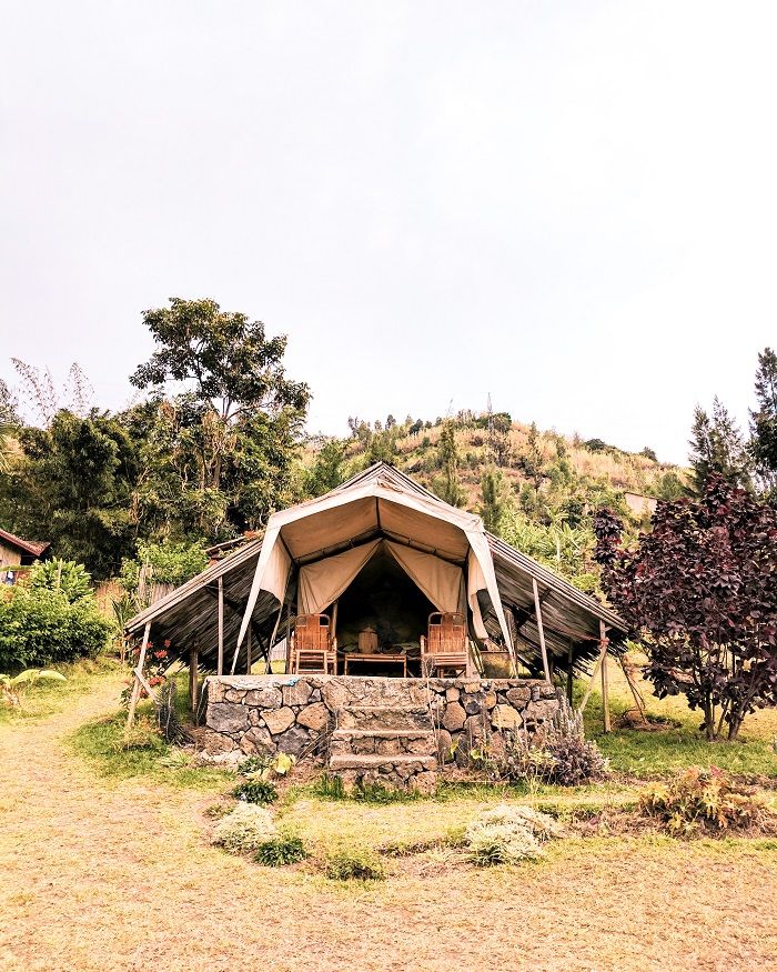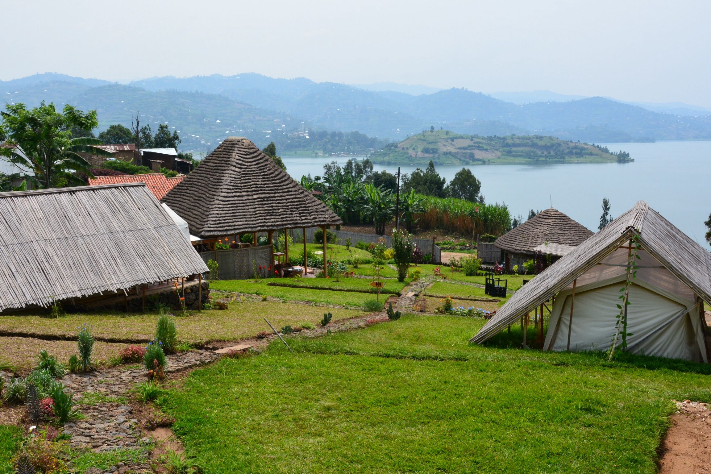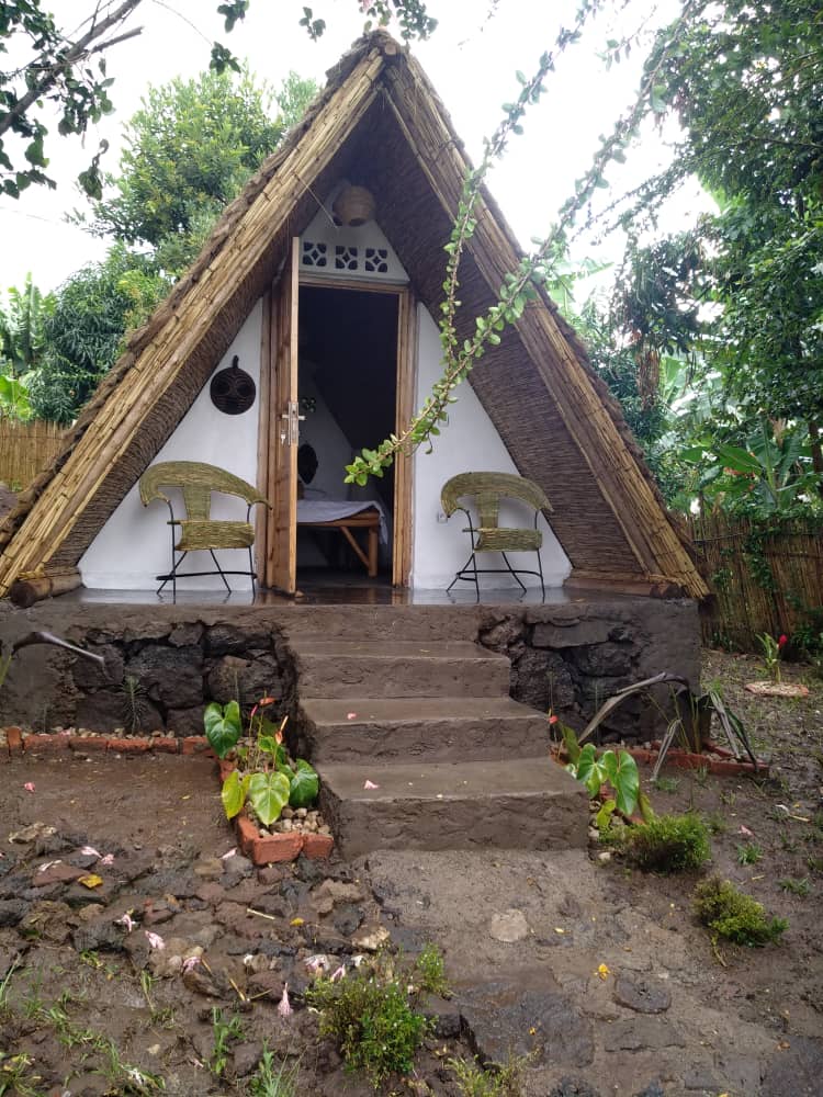 The INZU Lodge is an tented camp located close to Rubavu Town in front of Kivu lake. Situated 7 kilometers away from Rubavu Town, the INZU Lodge is perched on one of the hilltops surrounding beautiful Lake Kivu. Complemented by several islands, Lake Kivu is along the borders of Rwanda and the DRC. The view that you have from the INZU Lodge, is absolutely breathtakin. Opened in march 2012, INZU Lodge is a eco-lodge type. It offers lodging in 8 safari tents that can hold up to 2 or 3 people each. The tents are handsomely decorated and furnished with one double size bed or 3 single beds. The reception area and the INZU Lodge restaurant were built according to traditional rwandan architecture. The roofs for the reception and the restaurant are made of straw. The restaurant’s menu contains an interesting mix of traditional dishes as well as international dishes. The reception area contains a gift shop where delightful surprises await you. The majority of the art here is made by local non profit organizations or local cooperatives. The perfect place to find all sorts of souvenirs made in Rwanda.